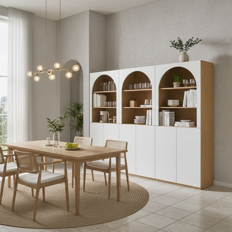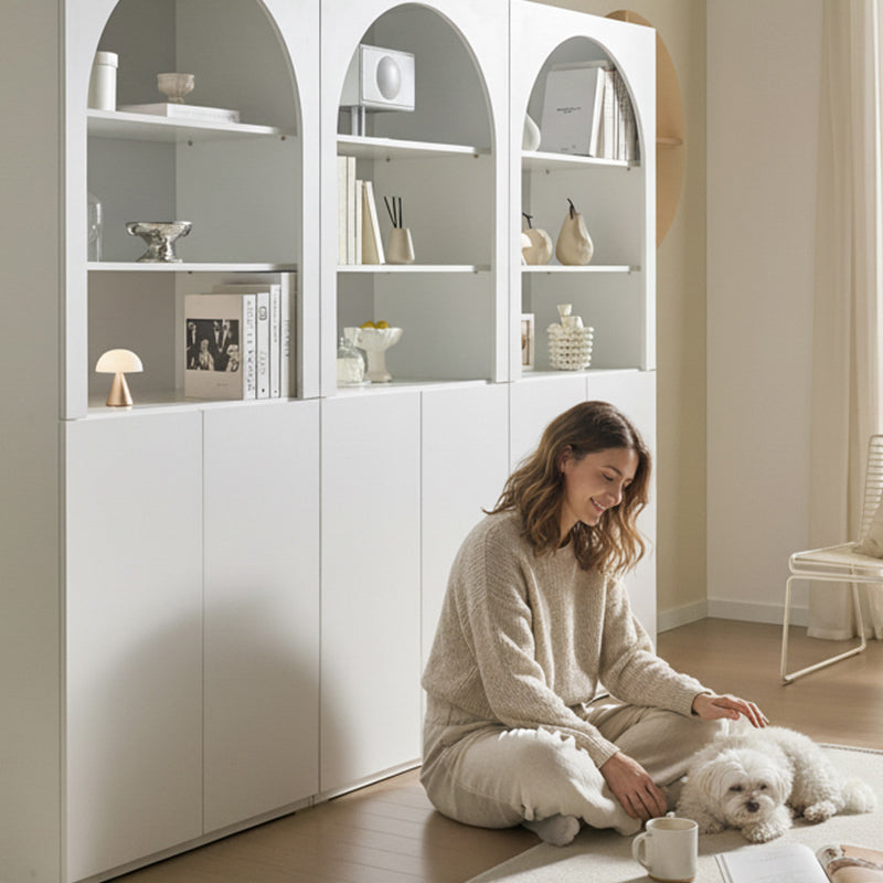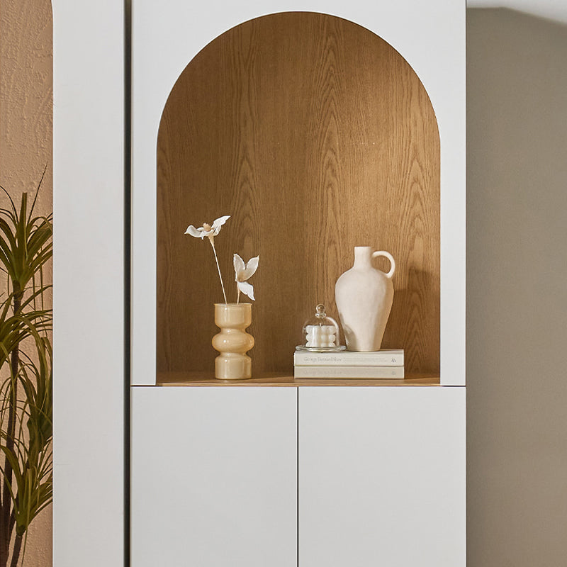 The elegant arch design adds visual depth while providing a stylish space to display décor, books, or personal collections.