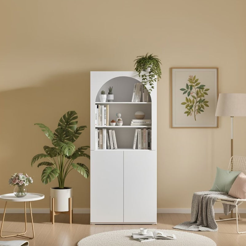 The elegant arch design adds visual depth while providing a stylish space to display décor, books, or personal collections.